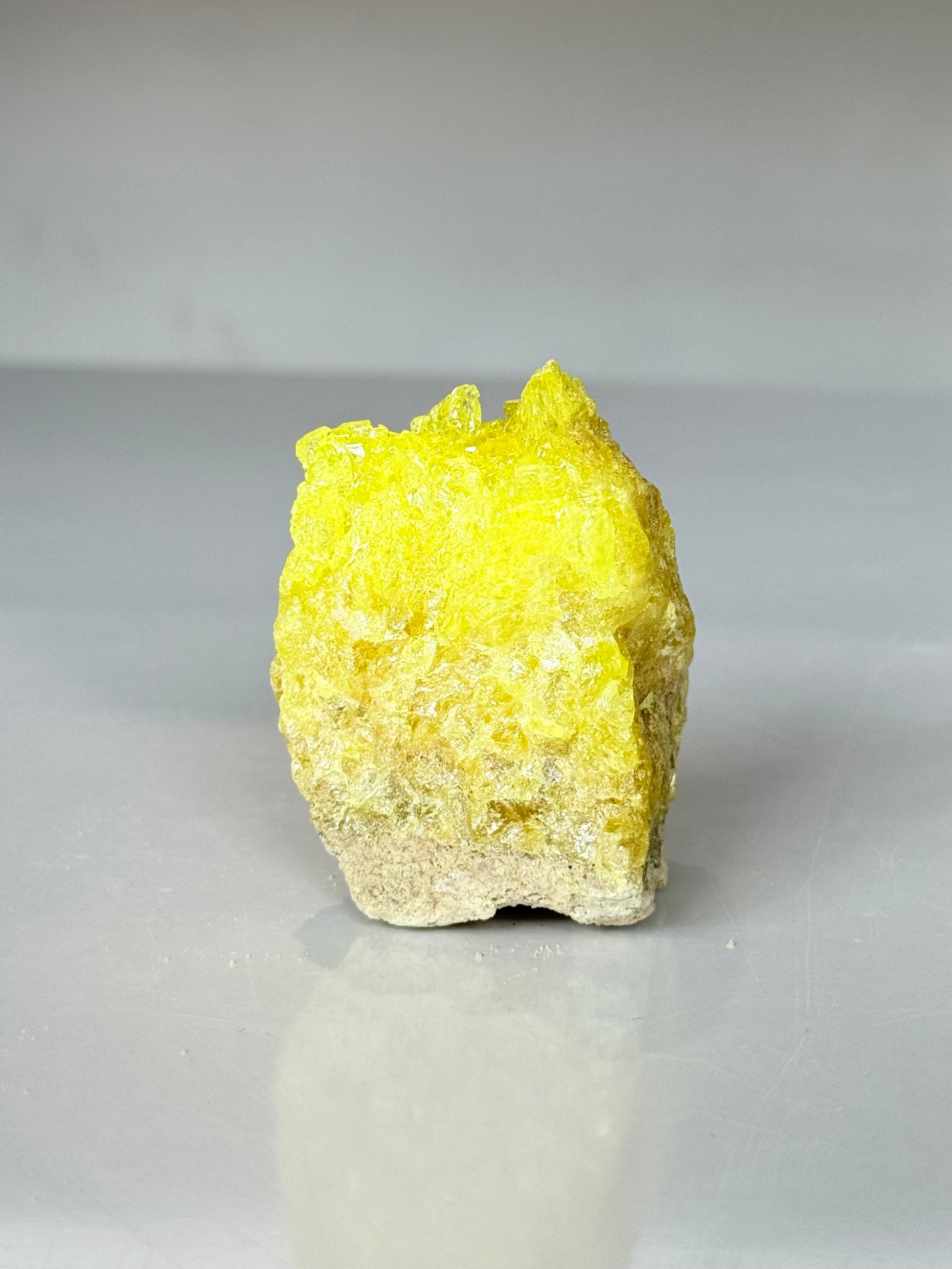 Visually striking and highly collectible, crystallized sulfur is valued for its raw, elemental appearance and its strong connection to Earth’s natural processes. Each specimen displays unique crystal structures, textures, and color variations.