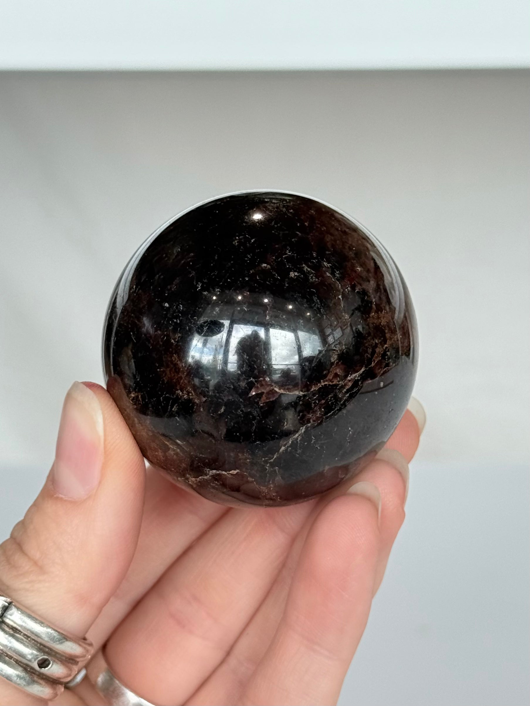 This Garnet Sphere features deep red to burgundy tones with a smooth polished finish that enhances its natural richness and depth. Its dense, grounding presence makes it both visually striking and energetically stabilizing.