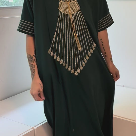 Green with Gold Embroidery Short Sleeve 100% Cotton Dress