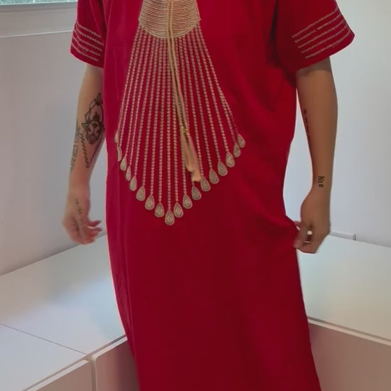 Red with Gold Embroidery Short Sleeve 100% Cotton Dress (Copy)